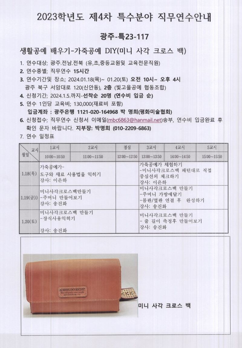 “2023년 제4차 특수분야 교원직무연수 8과정 안내장 및 신청서 약식 다운로드후 메일로 접수 바랍니다”